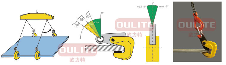 .額定載荷是指吊鉗成對使用、吊點夾具為60度時允許起吊的最大重量,吊裝作業中兩只或4只配套成組使用