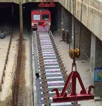 軌道鋪設排列工作完成后,還需要鋼板起重鉗搭配大型龍門吊將軌道移動到地鐵隧道里,放置平穩后,負責運輸工作的軌道平板車會緩慢將軌道運送到指定位置,最后再松開鋼板起重鉗,將鋼軌和枕木平穩放置下來,隨后工人會針對鋼軌的高度進行細微調節,直到鋪設工作順利完成。
